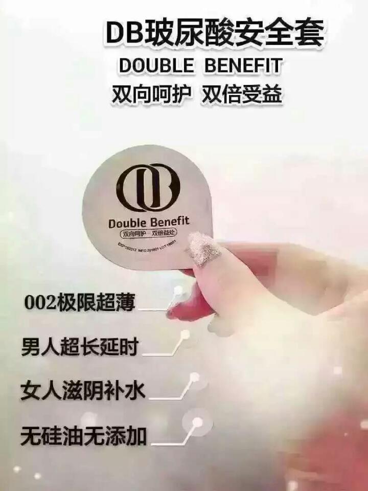 你们需要DB套套吗? 不带套的危害:男人:体外射精伤身体女人:意外怀孕伤身体男人女人:交叉感染几率大。 【DB玻尿酸安全套】功效特点:对女性滋阴补水、对男性延时、超薄到002、玻尿酸取代传统硅油。 【普通安全套.. 】:含硅油,长期使用容易在私处残留,滋生妇科病灶。厚度让男性不舒适。【DB玻尿酸安全套.. 】:100%使用玻尿酸代替硅油,长期使用滋养女性私处,增强阴道抵抗力。而且是第一个将玻尿酸和延时精华结合在一起的呵护女性也能让他大展男性魅力让爱情坚持到底! [呲牙]DB玻尿酸避孕套的品质已经达到国际工艺水平马来西亚进口橡胶+玻尿酸+天然延时成分