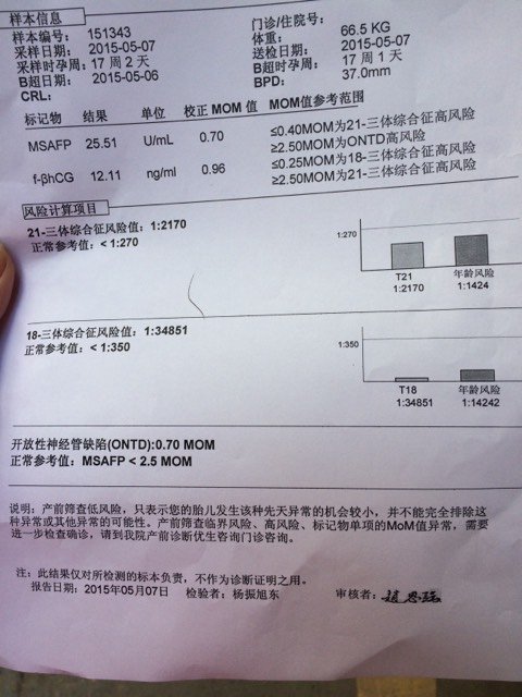 今天到手的唐筛单子,会看的医生朋友帮忙看看,谢谢! 今天到手的唐筛单子,会看的医生朋友帮忙看看,谢谢! 点击展开 酱油妹妹 2015-05-08 10:16 为您推荐: 其他回答 你好,这个检查的结果是低风险的,不用担心,建议继续观察就可以了。祝你好孕。 济宁市不孕不育 2015-05-08 18:25 正常的,低风险 520……悦熙 2015-05-08 11:12 没事的宝妈 家有俩宝贝真幸福 2015-05-08 10:53 正常没事。 158*****362_yT1v 2015-05-08 10:50 塘筛做什么的检查什么的啊!要多少钱 131*****456_Km73 2015-05-08 10:35 加载更多 相关问题 医生帮忙看看,我这个唐筛单子都是高风险吗? 今天有一点点褐色的东西,今天检查的单子,医生说孕酮有些低,开了药,懂得妈妈们帮忙看看 Ö 今天都18了,医生怎么还不通知唐筛结果哇ˊ->ˋ