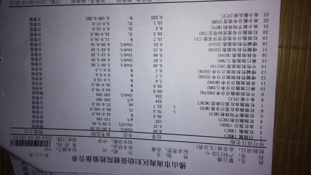 炎症高一点,如果你没有什么不舒服的话就没关系的,而且也是有可能接尿时污染的。你的血型是B性的,最后那张就是说你贫血,跟刚开始那张一样的