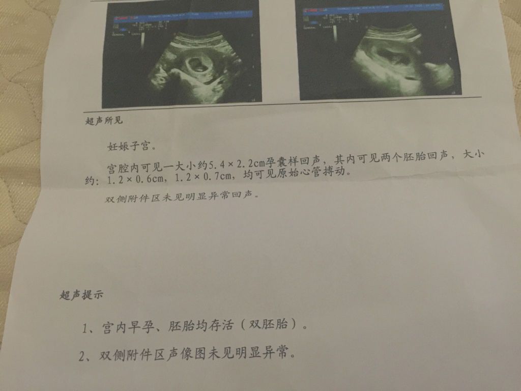 谁是妇产科大夫,帮我看看b超单这是同卵还是异卵?末次月经11.16日,怀孕53天测的,hcg正常吗