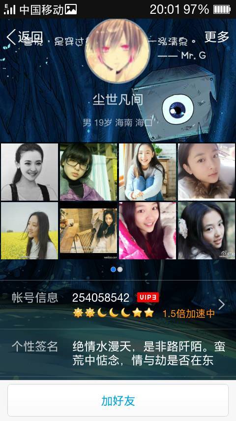 是这个他探讨一下这些女生~比如“你qq背景里的女剪破行生都好漂剑祸亮噢,很有眼室减光嘛”诸如此类的,探探他的口气,看他怎么说咯~