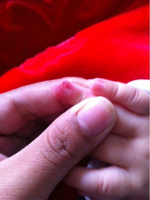 求助,今天给宝宝剪指甲,发现右手无名指边缘红肿,很像甲周炎,怎么办