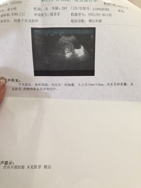 之前40天的时候去什么都看不到,因为出血了,今天45天还有一点咖啡色的医生要求在做B超如下,然后开