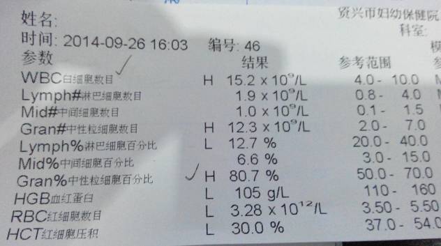 麻烦哪位医生帮我看下下图血常规的结果如何,谢谢!(本人现在怀孕四个多月了)