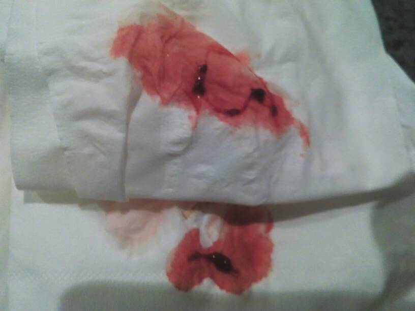 怀孕五个月,去厕所一使劲,阴道就滴血,做比超测胎心正常,不使劲不滴,滴完一擦就是这样请问怎么回事