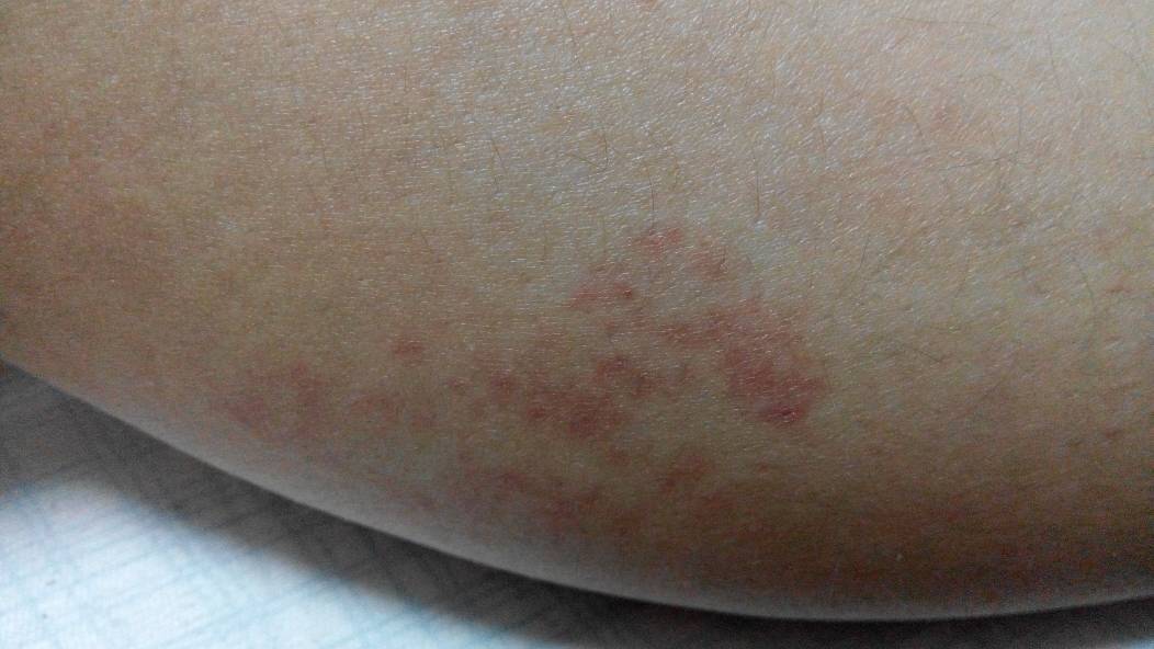 您好,估计是急性湿疹,红肿明显或渗液较多时,可用3 ̄4%硼酸溶液或5%醋酸铝溶液湿敷。红斑、丘疹或水疱,可搽炉甘石洗剂或振荡洗剂。慢性湿疹可用3 ̄5%糠馏油软膏外搽。内服范围较小,又无渗液时,可用地塞米松霜或肤轻松软膏外搽。内服药有苯海拉明、非那更、塞庚啶等。中药治疗湿疹也有一定的效果。