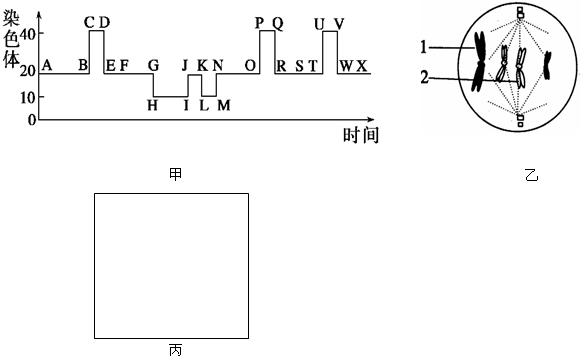 (1)P~Q段细胞经过了F-G段非同源染色体上非等位基因的自由组合和M-N段雌雄配子的随瓦法机结合,所以其遗传物质与C~D段细胞中遗传物质不同.乙图所示细胞处于减数第二次分裂中期,对应于甲图的H-I时期. (2)甲图中B~C段染色体数目加倍,原因是着丝点分裂,姐妹染色单体分开成为染色体.H~I段表示减数第二次分裂前期和中期,此时细胞中含有10条染色体,且每条染色体含有2条染色单体,所以此时细胞中染搂剪色单体数目为20条. (3)甲图中K~M段表示减数第二次分裂末期,发生在受精过程中,而受精的场所是输卵管. (4)乙图细胞处于减数第二次分裂中期,而减数第二次分裂过程类似于有丝分裂,若基因A位于1上,基因b位于2上,则该细胞产生的子细胞都含有Ab. (5)减数第一次分裂后期,同源染色体分离,非同源染色葛肿怠体自由组合,且该生物为雌性个体,减数第一次分裂后期细胞质出现不均等分裂,因此减数第一次分裂过程如图所示:故答案为:(1)不同;;;;HI(2)着丝点分裂,姐妹染色单体分离;;20;(3)输卵管;;受精(4)100%(5)如图