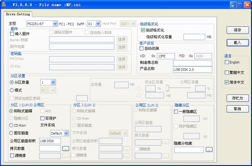量产有3个 cdrom hdd zip 想恢复就和量产的顺序一样 只是把之前的勾去掉就没问题了 接着你就在量产吧
