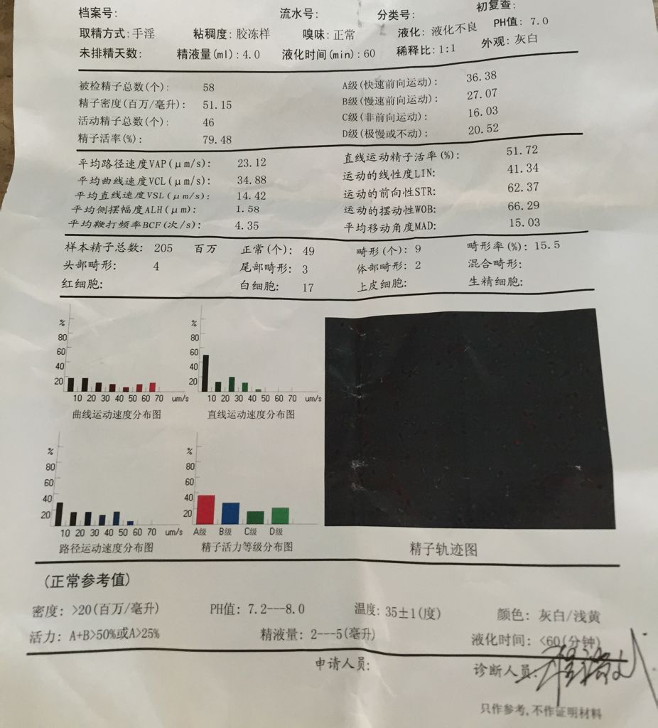 昨天精子常规检查,医生说液化时间长了点,问题不大,不怎么影响受孕!还跟我开了热淋清颗粒!请各位大师