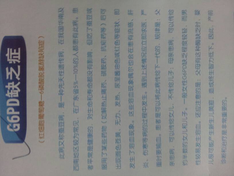 今天下午我去拿了大检的结果,医生说我有G6PD2缺乏症,还叫我重验尿肝的部分,真不知道会不会影到宝