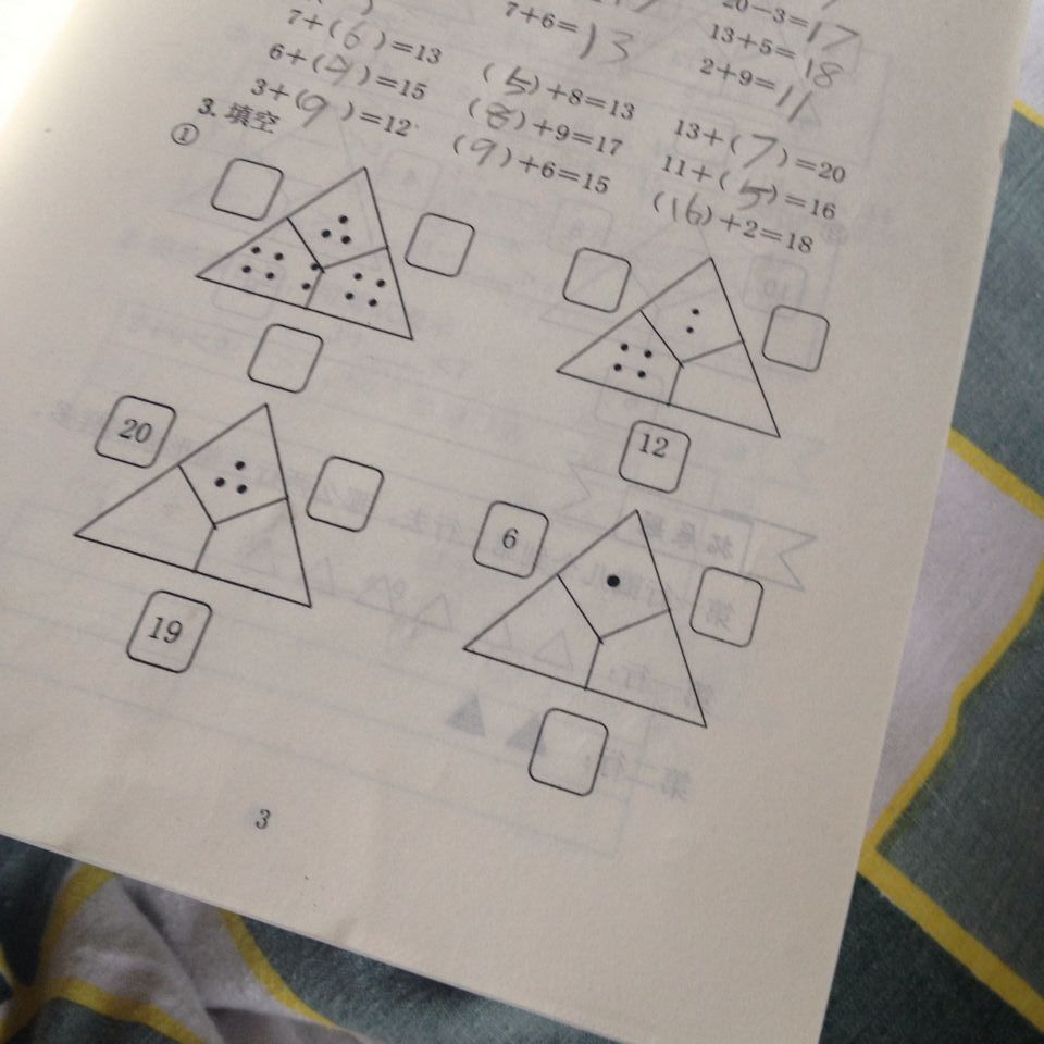 幼儿园数学题…在线等… 点击展开 匿名用户 2015-02-07 16:13 为您推荐: 其他回答 我猜应该是这样答的:把相邻两个四边形里面的点数和写在旁边的方框里。 匿名用户 2015-02-07 16:22 相关问题 一道幼儿园的数学题 两道小学生三年级的数学题,孩子不会我也不会,愁死了!在线等! 初二数学题,在线等 小孩子们问我的