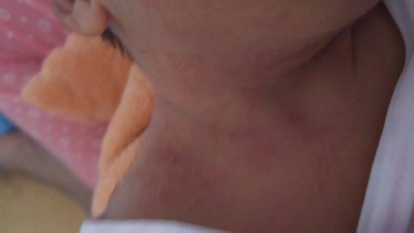 宝妈跟医生看看我宝宝长的是啥?好担心哦,一粒一粒的白白的 只有这个地方长