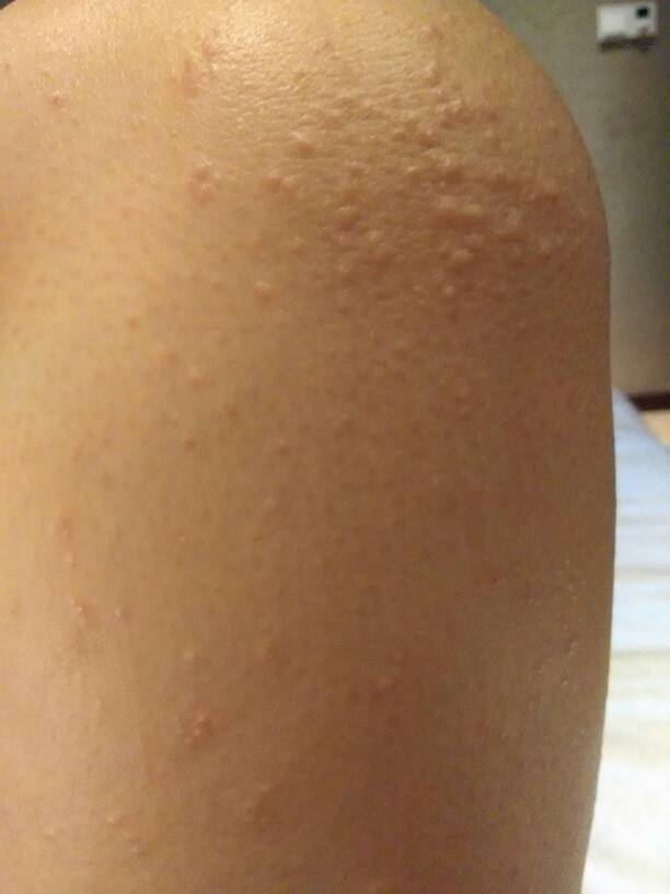 我的也是这样,是皮肤干才引起的,我茶了牛奶膏就没事了,一点都不痒了