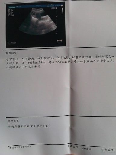 子宫前位形态饱满体积稍增大包膜光整宫内探及一无回声囊约15*13mm未见明显胚芽原始心管搏动及卵黄囊回声 点击展开 麻云飞_eXC9 2012-07-25 18:54 满意回答 怀孕多久了? 巨绍元_erRE 2012-07-25 18:56 宝宝知道提示您:回答为网友贡献,仅供参考。 相关问题 子宫前位,体积稍大,形态饱满,宫腔内可见大约14乘以12mm孕囊回声,内可见卵黄囊回声,暂未见明显 子宫前位长径85mm 前后径51mm,横径60mm,形态失常,轮廓清楚,包膜光滑肌层回声 子宫前位,包膜光滑,肌层回声均匀,宫内见一孕囊回声,大小约21*17mm,内示见胚芽和卵黄囊回声