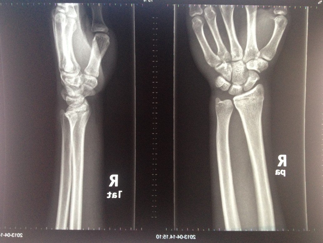 跪求懂得人士帮我看一下这个手腕片子是不是“下尺桡关节是脱位”??急!!感谢~~