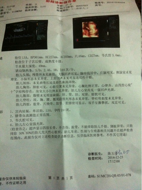 胎儿心室的强光斑形成原因不明,少部分人和心脏发育异常或者染色体异常等有关系,多数孩子是正常的。如果医生有建议做进一步检查,可以考虑做的