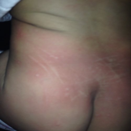 宝宝1岁半,今天才发现皮肤长疙瘩,她自己痒越抓越多,还破皮了,请问是不是什么过敏了?最近洗澡洗脸水 宝宝1岁半,今天才发现皮肤长疙瘩,她自己痒越抓越多,还破皮了,请问是不是什么过敏了?最近洗澡洗脸水都是咸的,有影响吗? 点击展开 匿名用户 2015-03-24 19:50 满意回答 也可能和水有关,最好多方面查一查 匿名用户 2015-03-24 20:35 宝宝知道提示您:回答为网友贡献,仅供参考。 为您推荐: 其他回答 可能是湿疹 最好去医院 匿名用户 2015-03-24 20:34 是过敏了 匿名用户 2015-03-24 20:33 最好去看一下医生 匿名用户 2015-03-24 20:33 这是湿疹 建议就诊 母婴用户552421143 2015-03-24 20:29 加载更多 相关问题 怀孕五个月为什么一洗澡洗脸就痒还有很多红疙瘩 给宝宝用什么洗脸,洗澡,不过敏 宝宝用了安儿乐纸尿裤过敏,屁股上又好多红疙瘩,有的都变白了,还大块的掉皮,怎么办啊