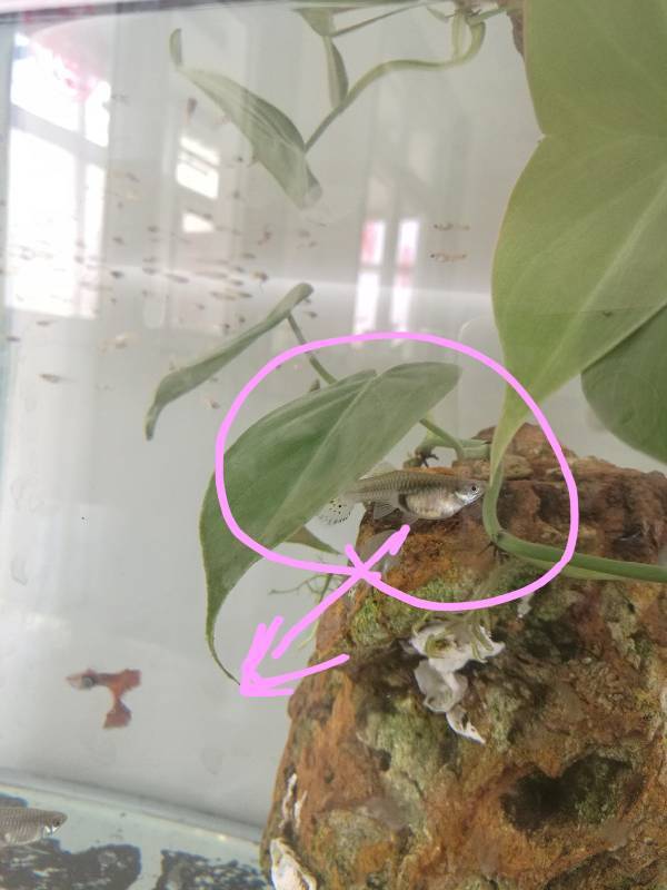 请问我的小孔雀鱼是有宝宝了吗?后面那块黑色的是传说中的胎斑吗?这