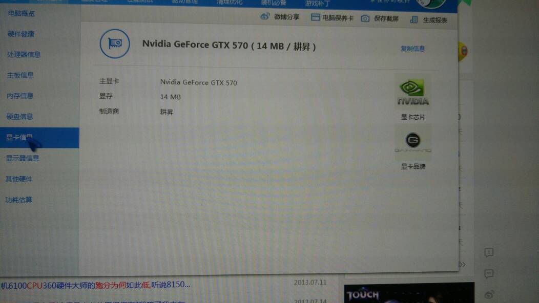 耕升GTX 570显卡装了驱动怎么显示是14MB求解 好奇怪 还有我的i7 950 CPU装了wi