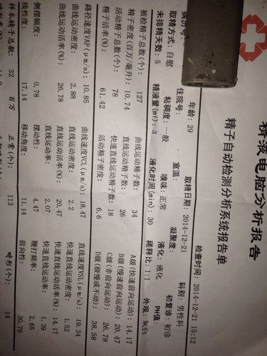 精子检测结果 麻烦医生看一下 备孕中,请教一下该如何提高受孕率,谢谢!不胜感激! 点击展开 匿名用户 2014-12-21 18:24 为您推荐: 其他回答 你好,根据你现在精液常规的检查结果来看,现在主要是精子的活力。a级精子加b级精子的活力达不到标准,所以怀孕的几率是比较小的,所以建议你啥时在医生的指导下,进行药物治疗,同时还要注意补锌。那么都有可能提高受孕的几率。 匿名用户 2014-12-22 21:19 相关问题 末次月经是08年6月27日的话,会不会在7月19日受孕?如果会,几a率有多大?麻烦谁帮忙回答一下 不胜感激! 有医生在吗?能否麻烦快点回答我呢?谢谢 我11月16日做过人流,12月19日同房了,好像有精子进去 精子向前活动29 6%容易受孕吗?