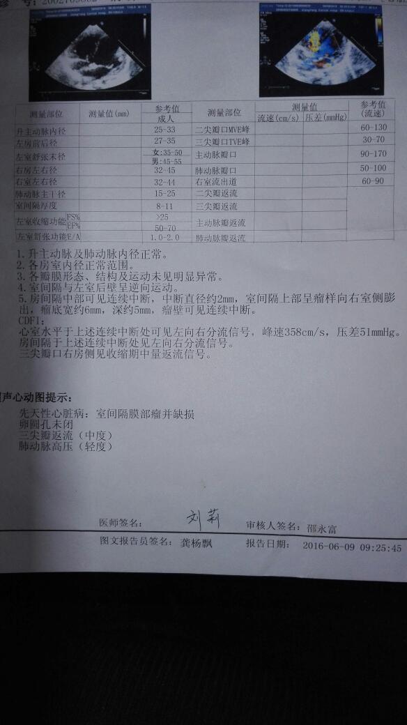 3个月宝宝先天性心脏病室缺隔膜部瘤并缺损,瘤底宽约6mm.深约5mm.卵圆孔未闭,三尖瓣返流中度 点击展开 匿名用户 2016-07-02 15:56 推荐回答 室间隔缺损小于5mm有自然闭合的可能性,自然必合几率25%。 如果在四岁急孟沃前仍没有自然闭合的话,或崭阶者崭键四岁前发育 但湛霞_o6kn 2016-07-02 16:03 宝宝知道提示您:回答为网友贡献,仅供参考。 相关问题 宝宝现在三岁,出生11天检查患有先天性心脏病:室间隔膜部缺损(缺损直径约4mm),左向右分流卵圆孔… 宝宝先天性心脏病室间隔膜周部回声中断6mm,房间隔卵圆窝处回声中断3 小儿先天性心脏病 医院诊断:室间隔膜损膜部,动脉导管未闭管型,卵圆孔未闭,肺动脉高压中度
