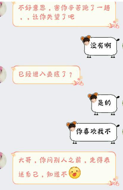 我和没谈过恋爱的女孩,刚见完面,看看有戏吗? 点击展开 匿名用户 2016-01-14 17:54 满意回答 有戏,应该是对你一见钟情了。 楼主赶紧的。 匿名用户 2016-01-14 18:00 宝宝知道提示您:回答为网友贡献,仅供参考。 为您推荐: 其他回答 有戏大了,舍得花钱💰 匿名用户 2016-01-14 17:56 戏不大,反正是慢热型,慢慢来 一叶之秋822 2016-01-14 18:05 慢慢来吧 匿名用户 2016-01-14 18:01 有戏没戏不重要,重要的是你俩有没有缘。发的这些我连看都没看。 匿名用户 2016-01-14 17:59 加载更多 相关问题 如果你刚和一个女孩谈恋爱她告诉你她怀孕了你会怎么办 我爱上一个女孩,我们只见过一面 但是我加了他的QQ后每天都会找他聊天他也会回复我 我没谈过恋爱 还 我家金毛三岁了,是个女孩,一直没有谈过恋爱,由于自己准备要小宝宝,所以想把它卖了,有意者QQ664312241