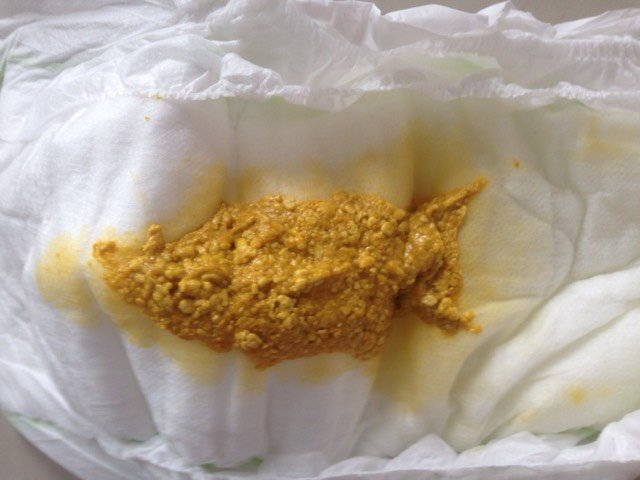 我家男宝宝2月龄,喂养以奶粉为主,我们在北方,天气较冷,可能是前天给他换衣服凉了肚子,一直拉这种形