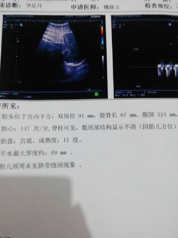 今天检查的,宝妈们帮忙看看宝宝大概多重? 今天检查的,宝妈们帮忙看看宝宝大概多重? 点击展开 我的未来只有你 2014-10-31 18:02 为您推荐: 其他回答 应该在六斤左右 我的天空他的城ぃ 2014-10-31 20:58 嗯,9.1X900-5200=2990克,也就是欠巴六斤。你算得很对。 莫如尽 2014-10-31 20:35 看不懂……… 铅笔画不出浅蓝的天空〃 2014-10-31 19:57 我宝宝出生时双顶颈是9.2,骨长6.7,六斤 蓝冰郁 2014-10-31 19:22 六斤左右吧 蓝冰郁 2014-10-31 19:09 加载更多 相关问题 请宝妈们帮忙看看 今天做四维的 正常吗? 宝妈帮忙看看,担心的问题今天做唐筛检查了,明天才知道抽血结果,帮忙看看这个b超单是正常的吗?医生没 宝妈们帮忙看看我宝宝脸上长的是什么?急急