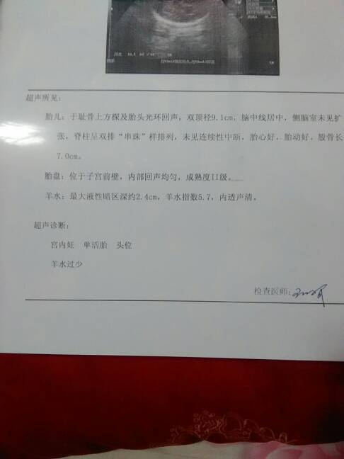 今天做的检查,羊水过少,双顶径9.1cm,股骨长7.0cm.是男孩女孩