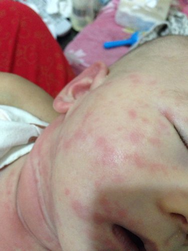 三个月宝宝,吃奶粉,昨天下午忽然手面和脚上起了几个类似蚊子咬的红疙瘩,今天早上有点扩散,这是什么啊