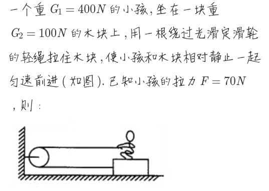 地面与物体摩擦为什么是140?不应该是70吗?小孩和物体之间为什么有静摩擦力? 点击展开 匿名用户 2015-08-11 13:11 为您推荐: 其他回答 匀速前进说明合外力为零,小孩匀速前进,受拉力和静摩擦力,70N。木块匀速前进受拉力,与地面的滑动摩擦力和小孩的静摩擦力,滑动摩擦力等于拉力加滑动摩擦力等于140N 匿名用户 2015-08-11 13:17 相关问题 小孩只要用90N水平推力,就可以使木箱沿地面匀速前进为什么不是最大静摩擦力 甲图中,小孩以80N的水平力推木箱,木箱不动,则木箱此时受到的静摩擦力大小为-N;乙图中,小孩至少 甲图中,小孩以80N的水平力推木箱,木箱不动,则木箱此时受到的静摩擦力大小为-N;乙图中,小孩至少