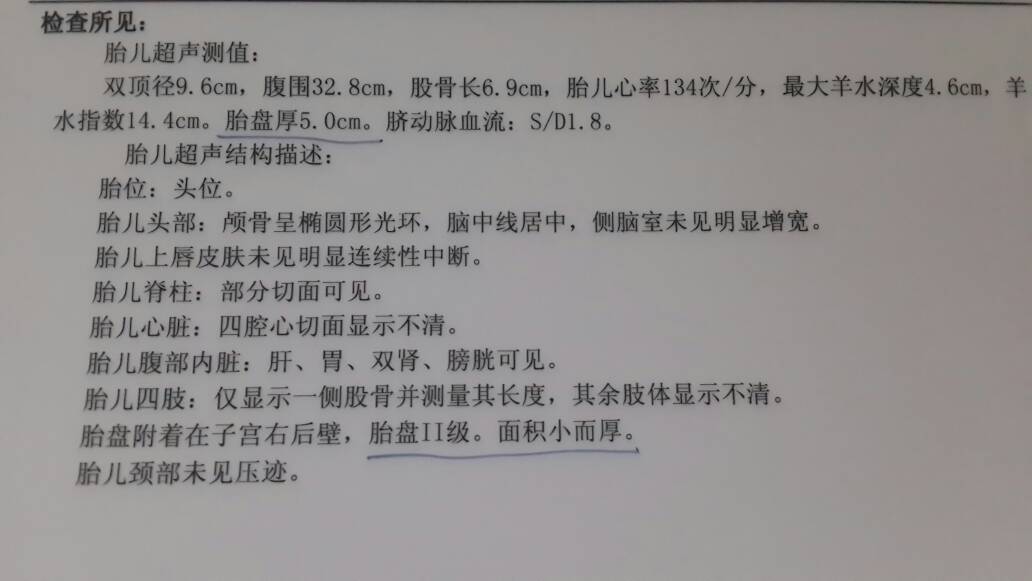 怀孕38周了,今天彩超检查单子麻烦看下有什么问题没?还有胎盘厚5.0cm.胎盘二级面积小而厚是什么 怀孕38周了,今天彩超检查单子麻烦看下有什么问题没?还有胎盘厚5.0cm。胎盘二级面积小而厚是什么情况呢? 点击展开 minima 2015-01-20 20:03 为您推荐: 其他回答 你的提供的数据来看,没什么问题的,个人都有差异的,不一定都是一样的。 许晶晶大夫 2015-01-23 12:32 相关问题 怀孕38周,彩超检查低值胎盘!胎盘离宫口1 5cm 能顺生吗?需要注意什么? 孕23周彩超bpd:63,hc:223,fl:43,ac:203,hl:38,心率约157,胎盘 孕23周彩超bpd:63,hc:223,fl:43,ac:203,hl:38,心率约157,胎盘