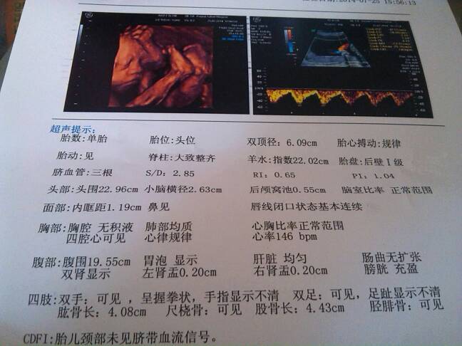 谁能帮我看看我宝宝的四维正常吗?羊水很多吗?谢谢 谁能帮我看看我宝宝的四维正常吗?羊水很多吗?谢谢 点击展开 吉祥妈 2014-08-15 09:39 为您推荐: 其他回答 抱歉!!!我没有别的办法了!建议住院治疗 世越妈 2014-08-15 12:50 是有点多,注意饮食规律 帅祺bb 2014-08-15 10:16 是挺多的…宝妈少喝水和汤类的食物 世越妈 2014-08-15 10:10 吃西瓜,冬瓜,这些都是利尿的 日出、陪你等 2014-08-15 09:44 从检查报告可知羊水指数是比较多的,在15cm到20cm是正常的范围之内的。 skychenlanlan 2014-08-15 09:40 加载更多 相关问题 帮忙看看,这个四维,羊水是不是真的少了啊?今天去医院,医生说正常的 可昨天做四维的医生说羊水少了 怀孕25+5四维照完BPD60mm,HC221mm,AC199mm,FL45mm,HL37mm,HR143b/m,S/D3 4,羊水40mm,大家帮我看看 怀孕39+6羊水深38、44、39、50mm,有谁知道羊水多还是少?帮我看看正常吗,谢谢