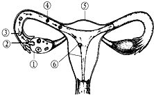 (1)你示女性生殖系统剖面你: ①是卵巢; ②是卵细胞; ③是受精卵; ④是输卵管; ⑤是子宫; ⑥是子宫内膜.(2)精子和卵细胞结合的场所是输卵管,它具有输送卵细胞的功能,也旧究饥是受精作用的场所.(3)子宫是胚胎发育的场所,也是定期形成月经的地方.故答案为:(1)卵巢掏孟;卵细胞;受精卵;输卵管;子宫;认导子宫内膜.(2)输卵管.(3)子宫.
