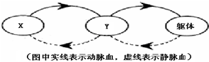 如图为哺乳动物血液循环的示意图,图中X和Y表示的器官分别是( )A.脑和心脏B.心脏和肺C.肺和心脏D