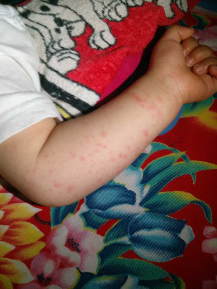 我家宝宝十一月,现在身上起的红斑性疹子,并伴有发烧,发烧大约在38度左右,发病大约一天整了,请问是