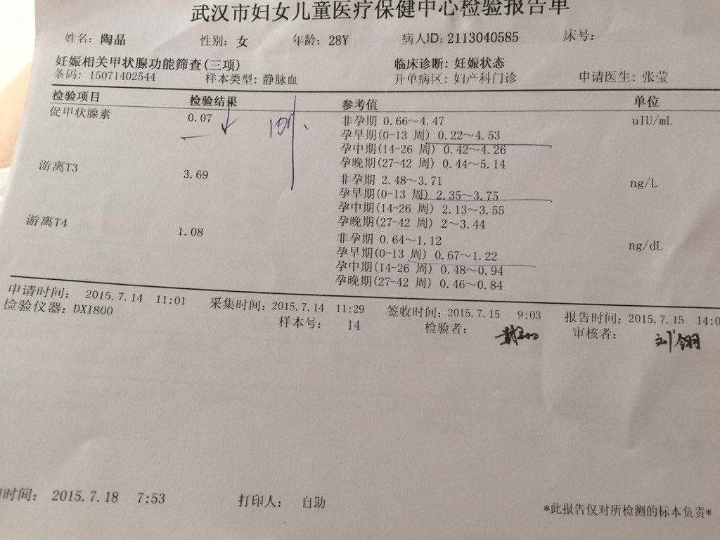 我想问问 这个情况需要注意什么 是甲亢吗 这是孕12周 做产检的化验单
