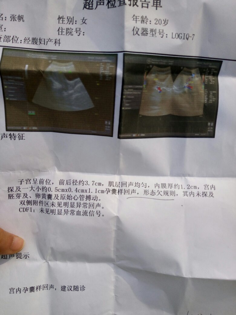 怀孕五周多,昨天出血了,去医院打了彩超,当时医生很忙,态度也非常不好,她说孩子保不住了,保住了也是 怀孕五周多,昨天出血了,去医院打了彩超,当时医生很忙,态度也非常不好,她说孩子保不住了,保住了也是畸形,让我做手术把孩子打掉,我又看不懂,麻烦谁懂这个帮我看看,谢谢了 点击展开 匿名用户 2016-01-17 15:14 为您推荐: 其他回答 胎儿有问题 匿名用户 2016-01-17 15:16 很多人太久没法国人天价茅台法国人记得让她 匿名用户 2016-01-17 15:16 可以去别的医院看看 匿名用户 2016-01-17 15:15 相关问题 请问怀孕8周多了,突然出血还有腹痛,有什么好的建议能保住孩子吗?那是彩超单能看出什么问题吗 怀孕三个月做的彩超,有经验的医生看下能告诉我孩子正常不 怀孕25周多,今天做彩超,医生说胎盘有点低,但是能看的出来长上去了一点点,但我还是怕,后面会不会继