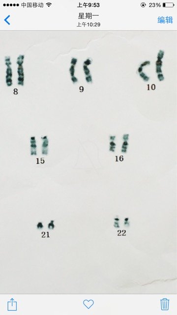 请问哪位医生知道 这个21号染色体是否异常? 请问哪位医生知道 这个21号染色体是否异常? 点击展开 多多的顺利 2014-11-27 09:54 为您推荐: 其他回答 祝宝妈好孕。 wszn66 2014-11-29 15:40 为什么还做染色体,我咋没做, 折羽青鸟_cWdr 2014-11-28 23:01 单子上不是会写染色体结构和数量未见明显异常吗? 似非而是 2014-11-28 09:02 正常的,不用担心 萱宝的妈咪 2014-11-27 21:24 正常啊都!! 150*****423_Ik9N 2014-11-27 13:39 加载更多 相关问题 婴儿21号染色体异常怎么办 曾染色体异常47,XU,21,AFP-AF:4447 IU/ML如果再孕需要做什么检查 染色体异常,本来已经决定生下来的了,回家养胎,家里的医生刚好是公公婆婆的朋友,然后说了好多,说你们
