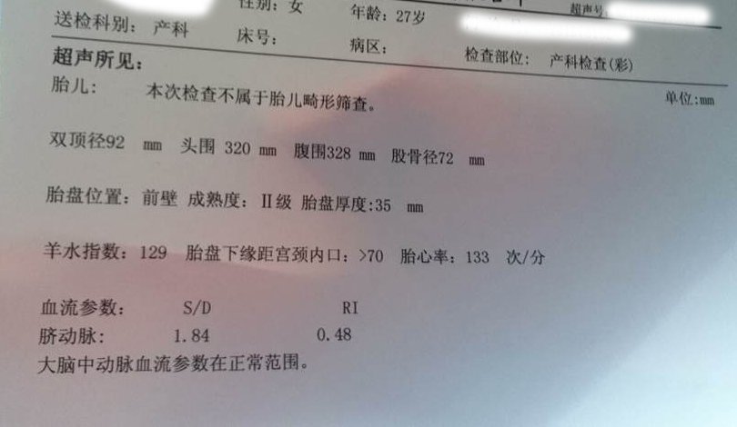 双顶径92mm 头围320mm 腹围328mm 股骨长72mm 请问胎儿现在多重了?预产期是本月17号 点击展开 匿名用户 2015-01-04 16:57 为您推荐: 其他回答 你好,考虑为3080克左右,属于孕晚期,现在随时有分娩的可能性,并且如果有疼痛、见红、羊水破裂的话,最好去医院检查一下的。 shenglongxiao 2015-01-04 17:35 相关问题 孕39+5双顶径92mm肱骨长72mm股骨长72mm腹围362mm孩子大概多大 双顶经92mm\头围328mm\腹围325mm\股骨长72mm 双顶径95mm 头围326mm 腹围328mm 股骨长72mm 孩子多少斤