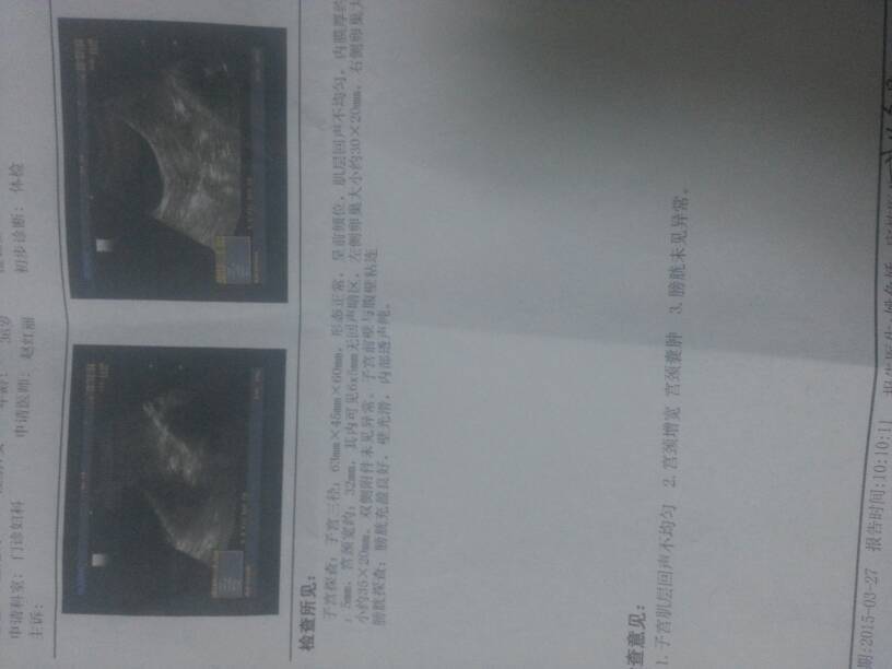 我是2月15号做的无痛人流、3月17号第一次月经(月经期间一直到今天肚子整个下坠胀痛、经血开始鲜红、后来黑红、经血量特别多、有血块。伴有厌食、头晕无力)7天月经结束、可小肚子胀痛越来越严重、让我无法忍受了!想知道是什么原因引起疼痛的?应该用哪些药物能治好?请懂的朋友帮我看一看!今天B超结果检查下图