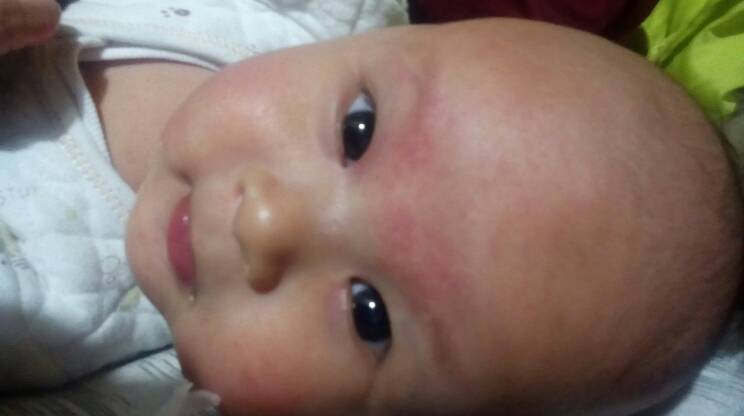 我家宝宝小的时候比你家宝宝严重不光是额头上有身上也有一热就有后来都是宝妈们传授的经验给宝宝洗温水澡少穿衣服 我家中午24℃一早一晚22℃白天给宝宝光屁屁晚上穿内衣裤睡觉的时候盖夹被现在宝宝十四个月了基本上好了