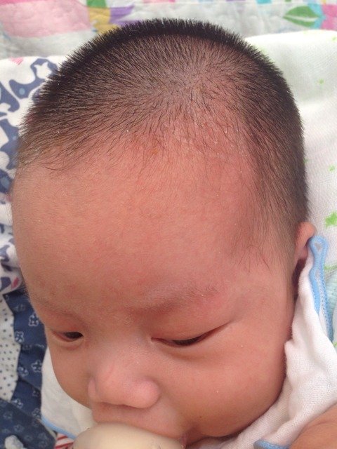 宝宝头上出现了这种情况,属于湿疹的表现,主要是由过敏或者是有湿热造成的,宝宝的情况最好继续观察,在不严重的情况下是不用治疗的,宝宝要注意避免感染,如果是母乳喂养妈妈不要吃海产品食物,以免加重症状,是可以涂抹抗过敏的药物治疗观察的。