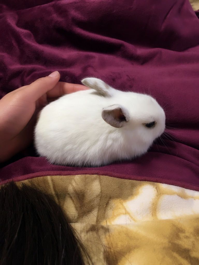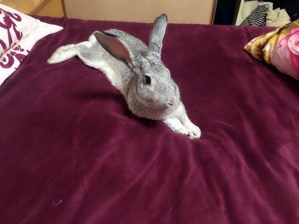 我家大兔子九个月了 今天买了个小兔子 大兔子看到小兔子把小兔子咬着它的头不放!甩来甩去的 大兔子是