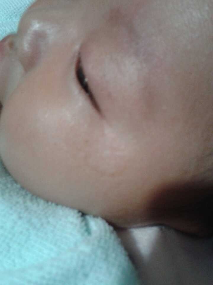 请问,三个月宝宝两边眼角皮肤有白斑,去医院看过,医生草草的说是湿疹,拿了一个溃疡药涂,但是老是不放