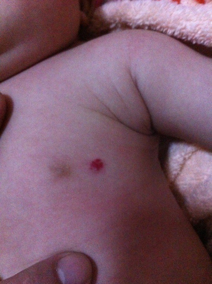发现宝宝身上有一块血红色的像痔一样的东西是什么啊?附图!