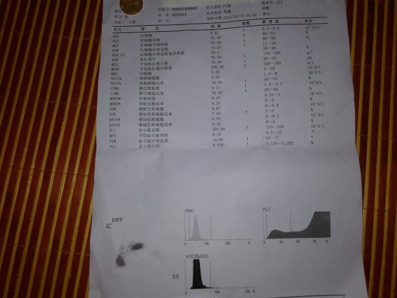 谁能帮我看看这两张血液检验报告有什么问题吗?小孩有贫血吗?需要补什么吗?食疗多吃什么好?需要怎么调
