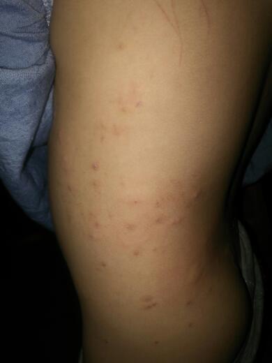 刚回老家,宝宝身上起疙瘩 本来不是很多 但是挠了一下就变大变多了,不知道是水土不服皮肤过敏还是跳蚤