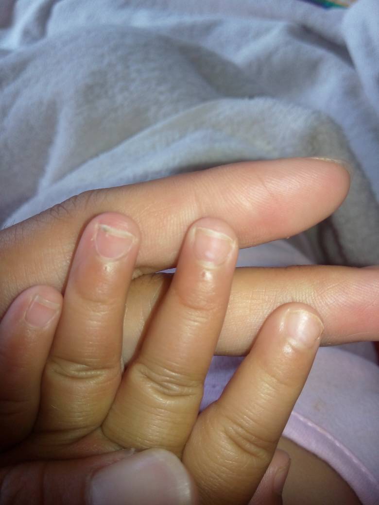宝宝指甲剪的太短了,感觉只剩一半指甲盖了,怎么能让新长出来的指甲盖和肉长到一起呢,两只手都是中指和