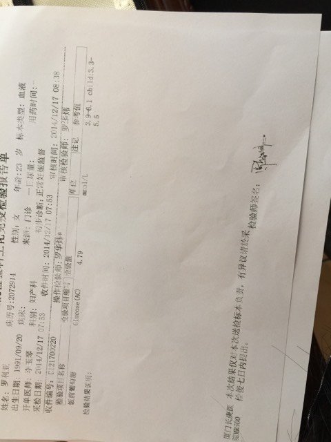 请问不做妊娠糖尿病会有风险吗?平时也没怎么吃甜的 昨天空腹去做,就抽了一针,后面喝葡萄糖吐了,说抽 请问不做妊娠糖尿病会有风险吗?平时也没怎么吃甜的。昨天空腹去做,就抽了一针,后面喝葡萄糖吐了,说抽血不会准。请问还应该去查吗?这张单是第一针的化验单,帮我看看! 点击展开 158*****926 2014-12-18 13:05 为您推荐: 其他回答 这个是需要看你家里人有没有糖尿病病史的啊,筛查是为了预防的啊,空腹的还可以 莹and升 2014-12-18 19:39 相关问题 我前天做糖耐检查,空腹5 7 喝葡萄糖一小时11 23 两小时8 003,这个是妊娠糖尿病 血糖空腹4 9喝了75g葡萄糖一小时11 65两小时8 9医生属于妊娠期糖尿病,下周让我去复查,现 糖耐空腹血糖4 9,喝了葡萄糖1小时10 16,两小时9 03属于妊娠糖尿病吗?